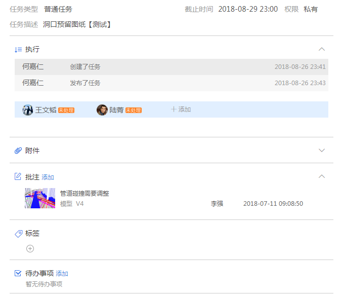 通常,项目上的资料签收单、BIM核查销项报告、反馈和审核报告、协调会议纪要、设计阶段最终成果审核单等都是项目上最常使用的沟通标准文件,需采用正规流程方式进行,目前这些文件都是通过协筑平台的任务流程进步发布和执行,最后所有的资料再归档到协筑的文档模块中。另外由于在项目实施沟通中,具体实施的文件需要给责任人签字确认,签字可为电子签,协筑平台的电子签名就很好地实现了这点需求:只要在移动端的个人设置中设置好自己的手写签名,在任务中浏览文档附件的时候,就可以加上设置好的手写签名了。