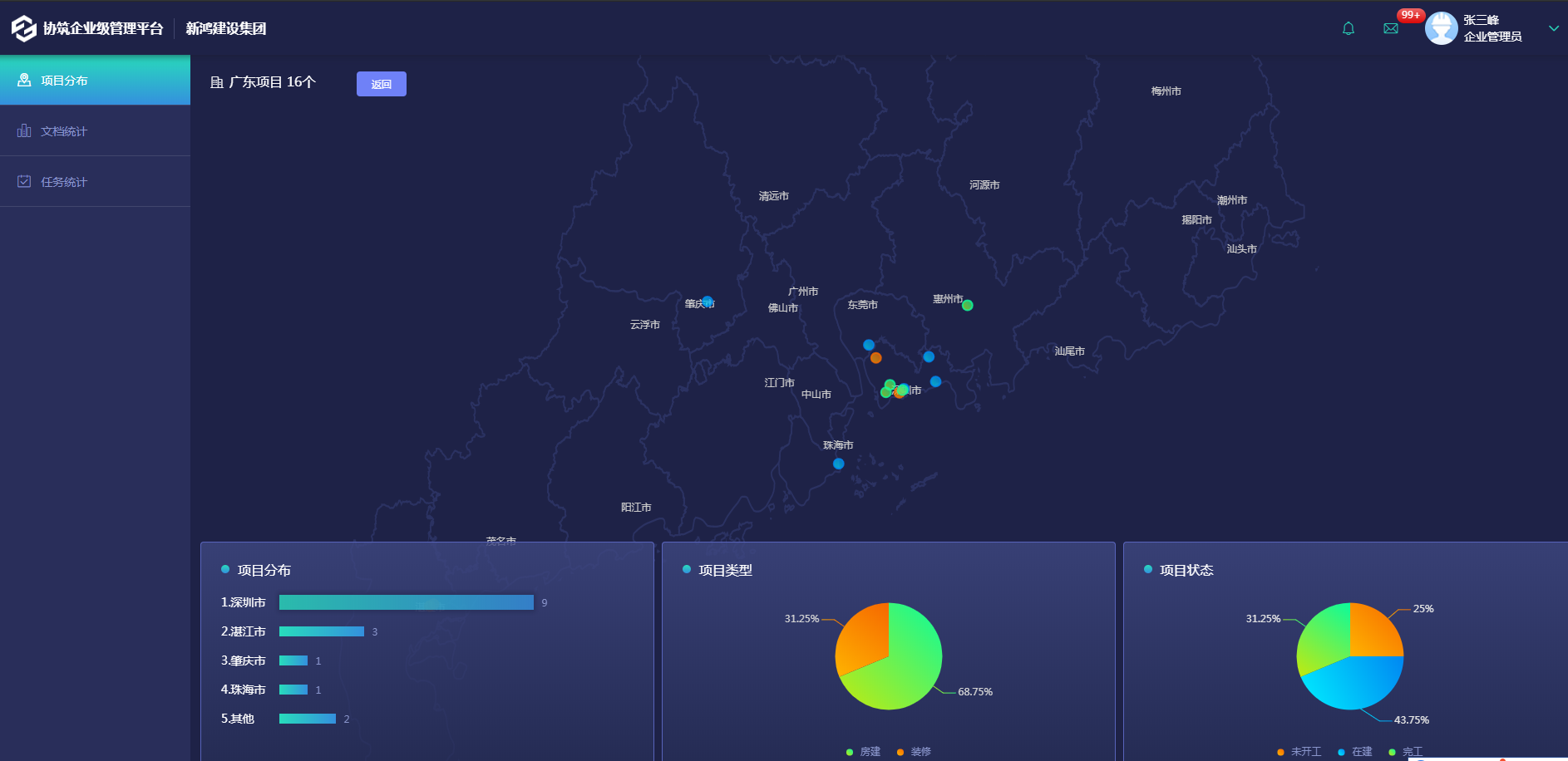 摘要:协筑企业级管理平台可以按区域管理项目,轻松查看项目分布地区、项目类型、项目状态,追踪各区域相关项目的文档更新情况、任务流程进展。