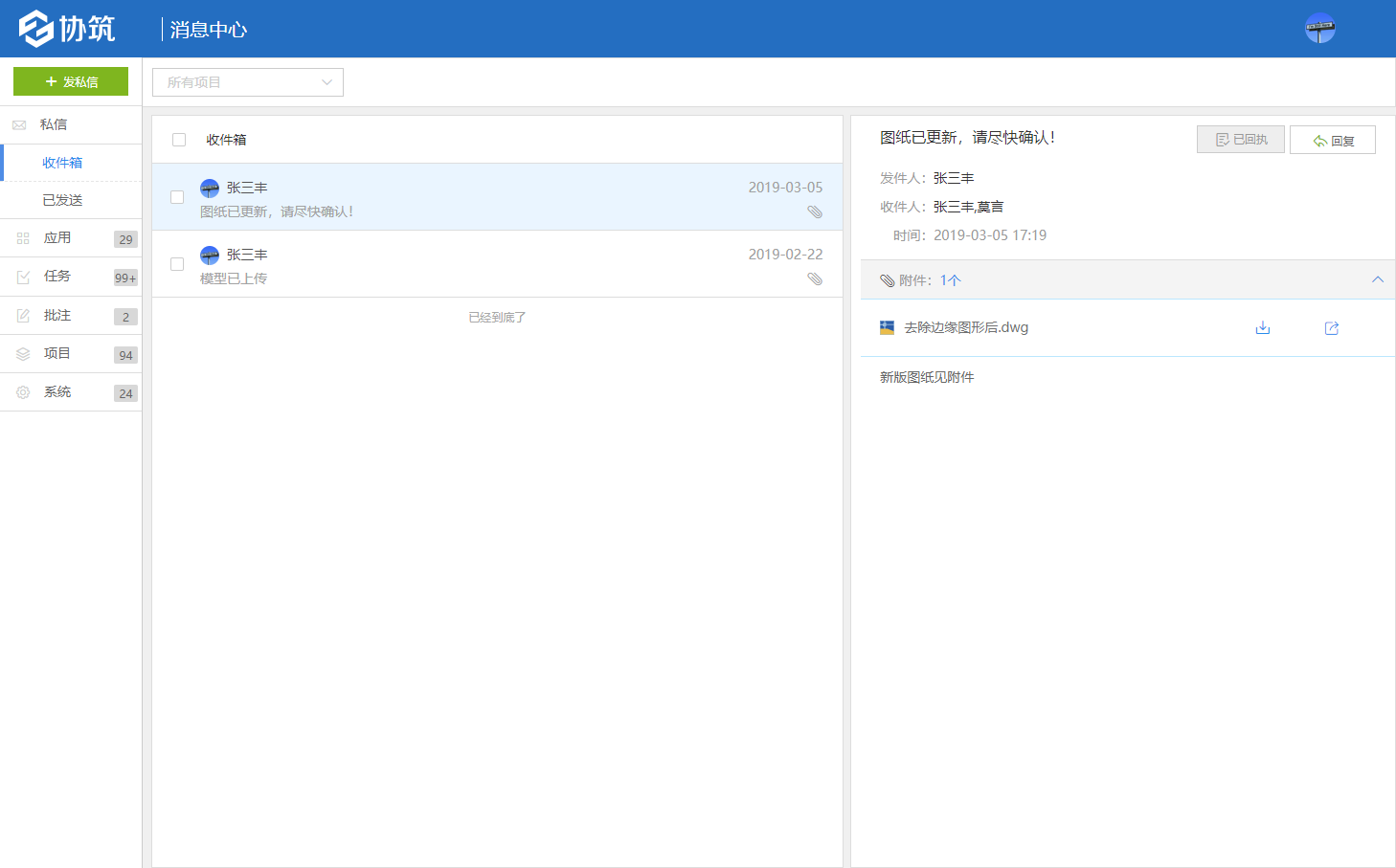 该模块提供统一的企业消息入口,让当前用户可以查看企业下属所有项目发送给自己的全部相关消息。