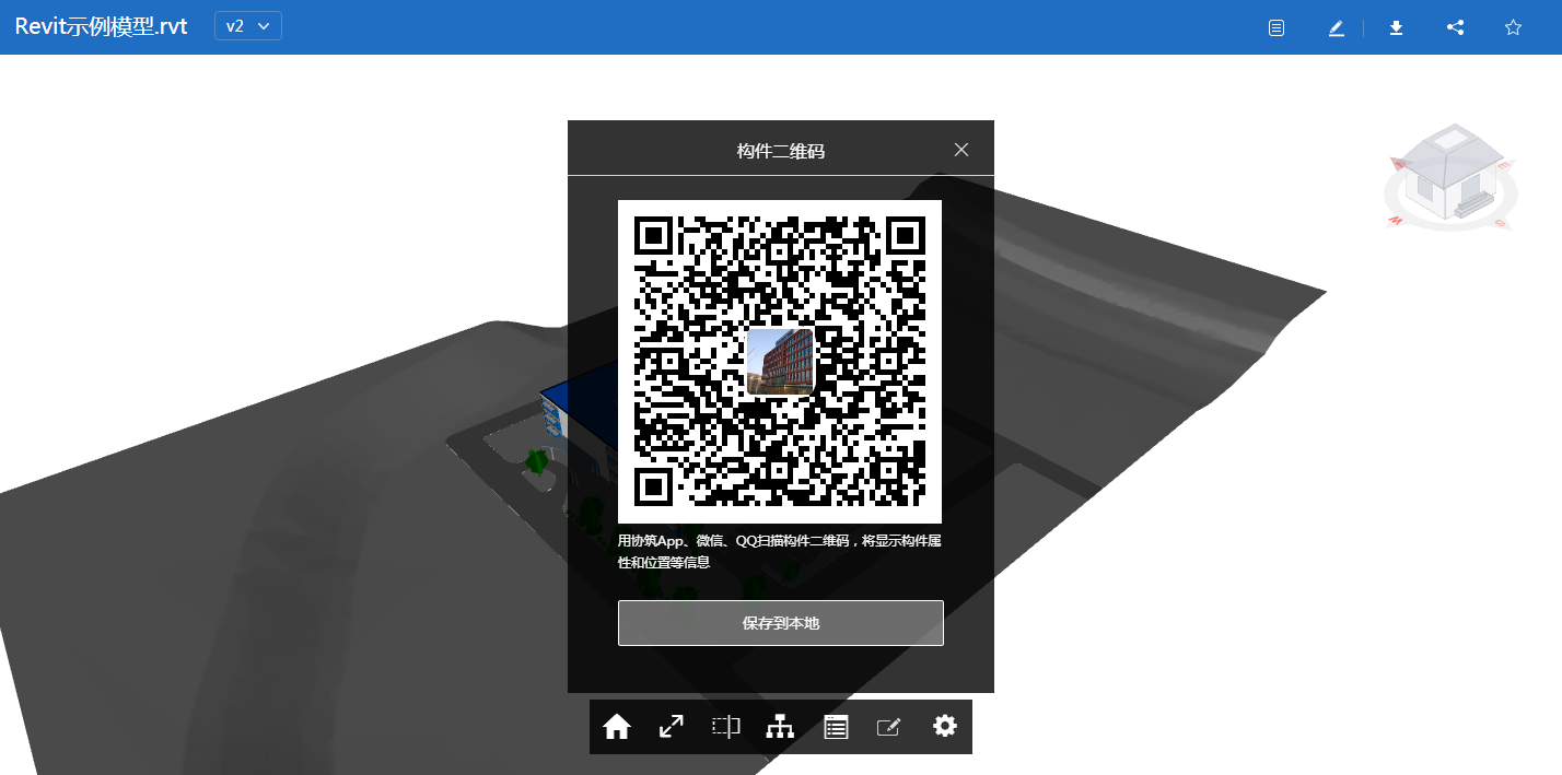 1.9新增模型构件生成二维码功能,手机上使用二维码扫描即可查看属性和模型